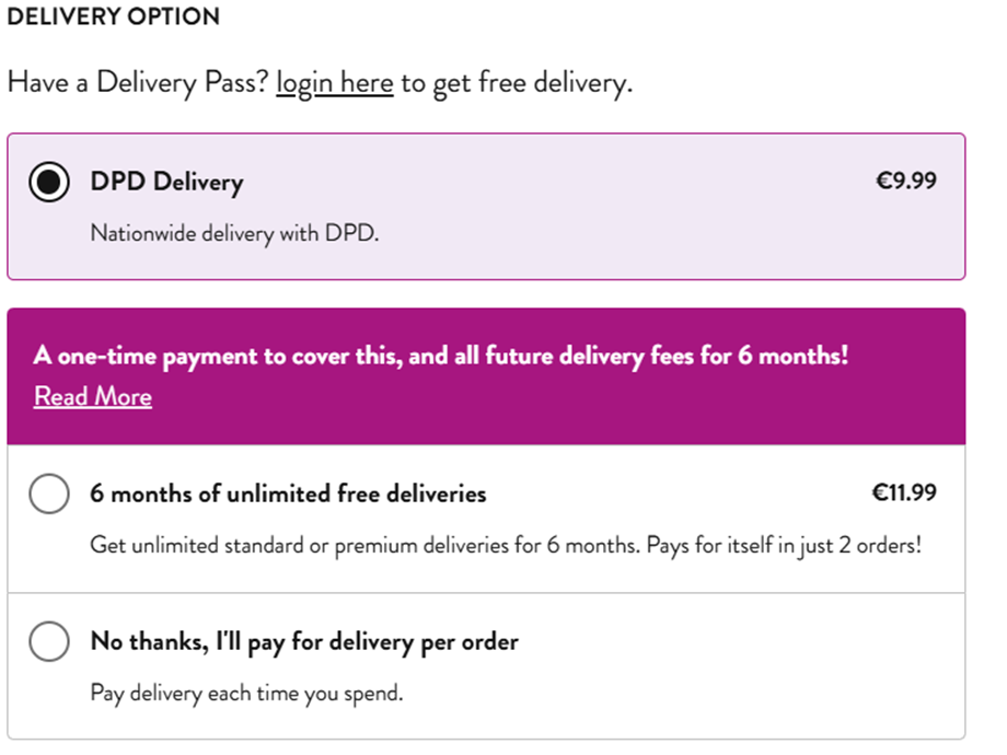 Once these steps are completed, you will be presented with two delivery options to choose from. It is important to be aware that if you are unable to see all available delivery methods, or if you receive a prompt similar to the example shown below, this likely indicates that you are not currently logged into your account. Logging in is required to unlock all delivery choices and to take full advantage of your account benefits.